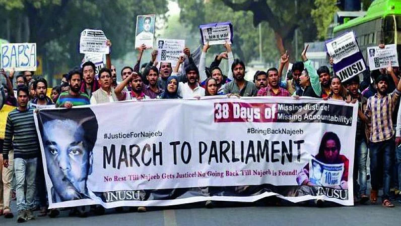Najeeb Ahmed, 27, an MSc first year student, was reported missing from the Mahi-Mandvi hostel of Jawaharlal Nehru University (JNU) on October 15, 2016, after an alleged scuffle with the Akhil Bharatiya Vidyarthi Parishad (ABVP) members
