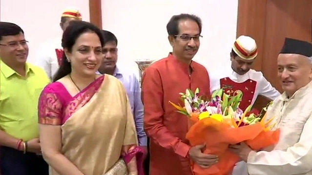 The Governor received them warmly with folded hands and a "namaste" while Thackeray reciprocated and presented a bouquet to him.