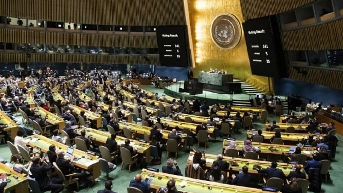 The 193-member General Assembly adopted the resolution on Wednesday, 18 September, with 124 nations voting in favour, 14 against and 43 abstentions, including that by India.