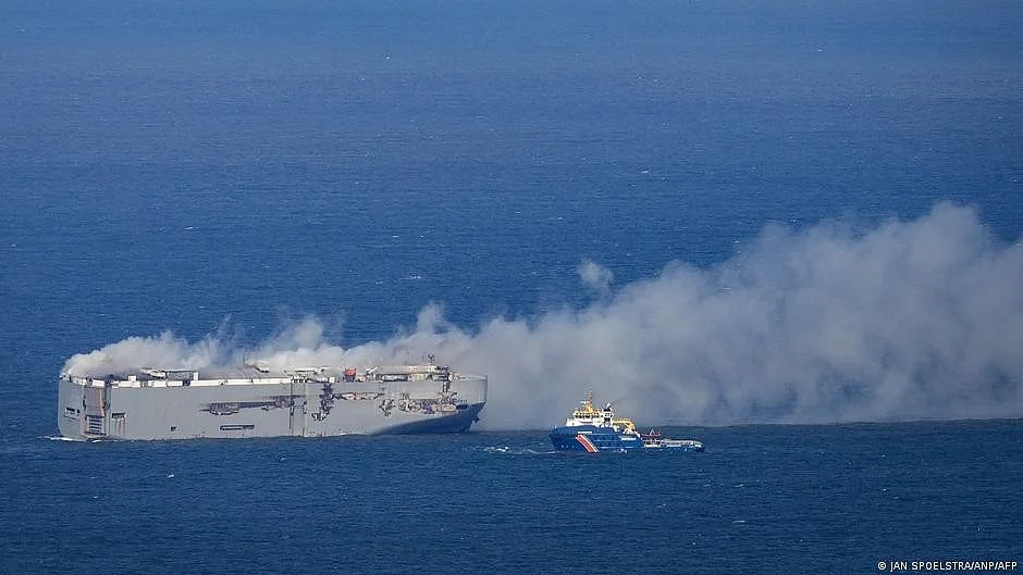Car-carrying ship off Dutch coast still burning