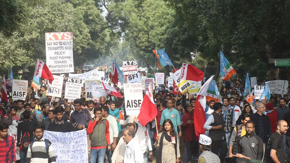A march from JNU to President's house was called by the Jawaharlal Nehru University Students Union (JNUSU) after their month long protest failed to bear fruits as the administration rejected their demand of complete rollback of proposed hike in hostel charges.