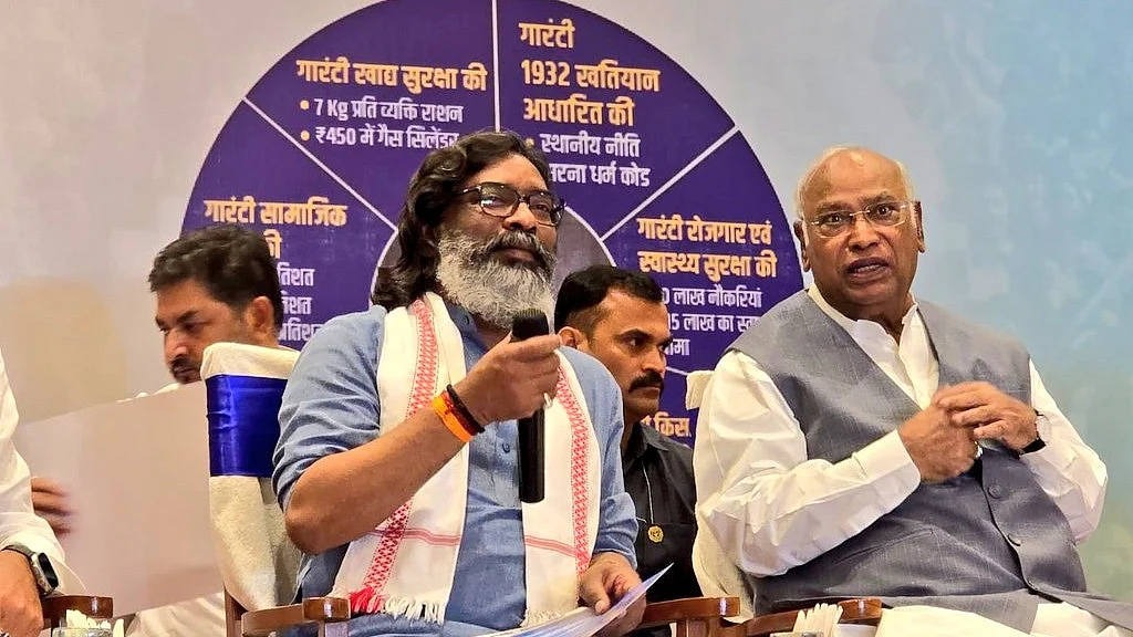 "The INDIA bloc will ensure 10 lakh jobs for youth and Rs 15 lakh health cover for the poor," Congress president Mallikarjun Kharge said while jointly releasing the manifesto with Jharkhand chief minister Hemant Soren and RJD's J.P. Yadav.