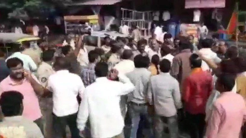 BJP leaders and workers tried to resist the protestors, leading to tension. The two groups entered into a heated argument and raised slogans. They jostled with each other.